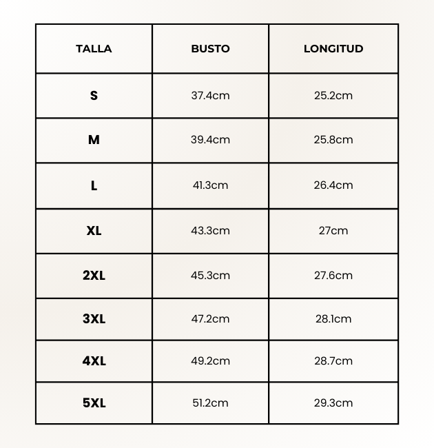 TABLA DE TALLAS
