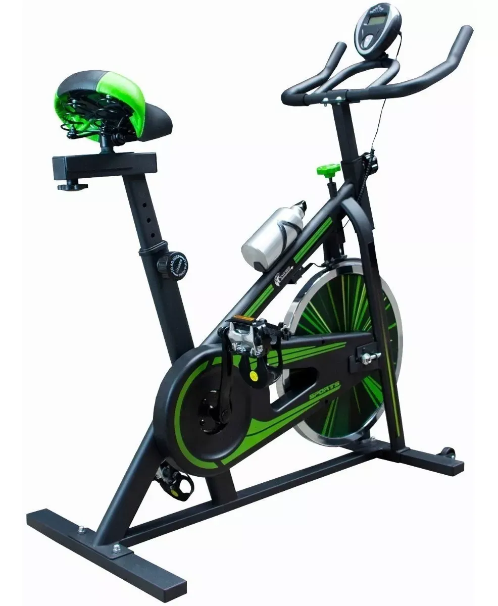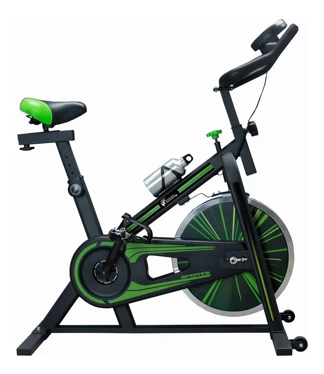 Bicicleta Spinning 10kg Centurfit Ajustable Cardio Fitness Color Negro/Verde