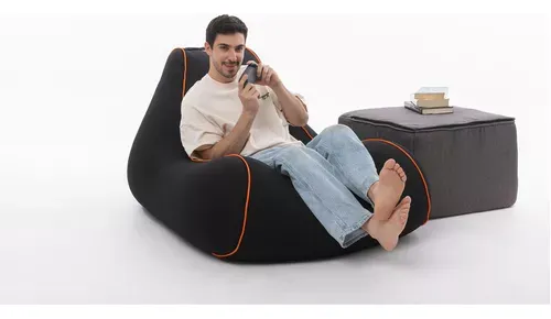 Puff Play Seat Sillón Para Jugar Videojuegos Y Descansar Color Negro con Verde Limón