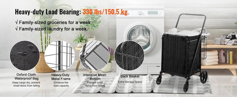 ¿Estás luchando por encontrar espacio para tus comestibles? ¡Nuestro carrito es la solución perfecta! Con una capacidad de 330 libras, es un compañero ideal para carreras de comestibles, recogidas de ropa y transporte diario. El diseño plegable garantiza un fácil almacenaje en cualquier rincón.