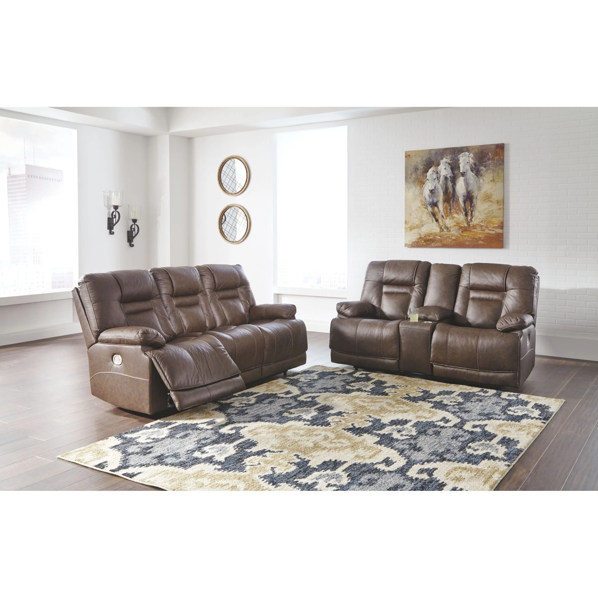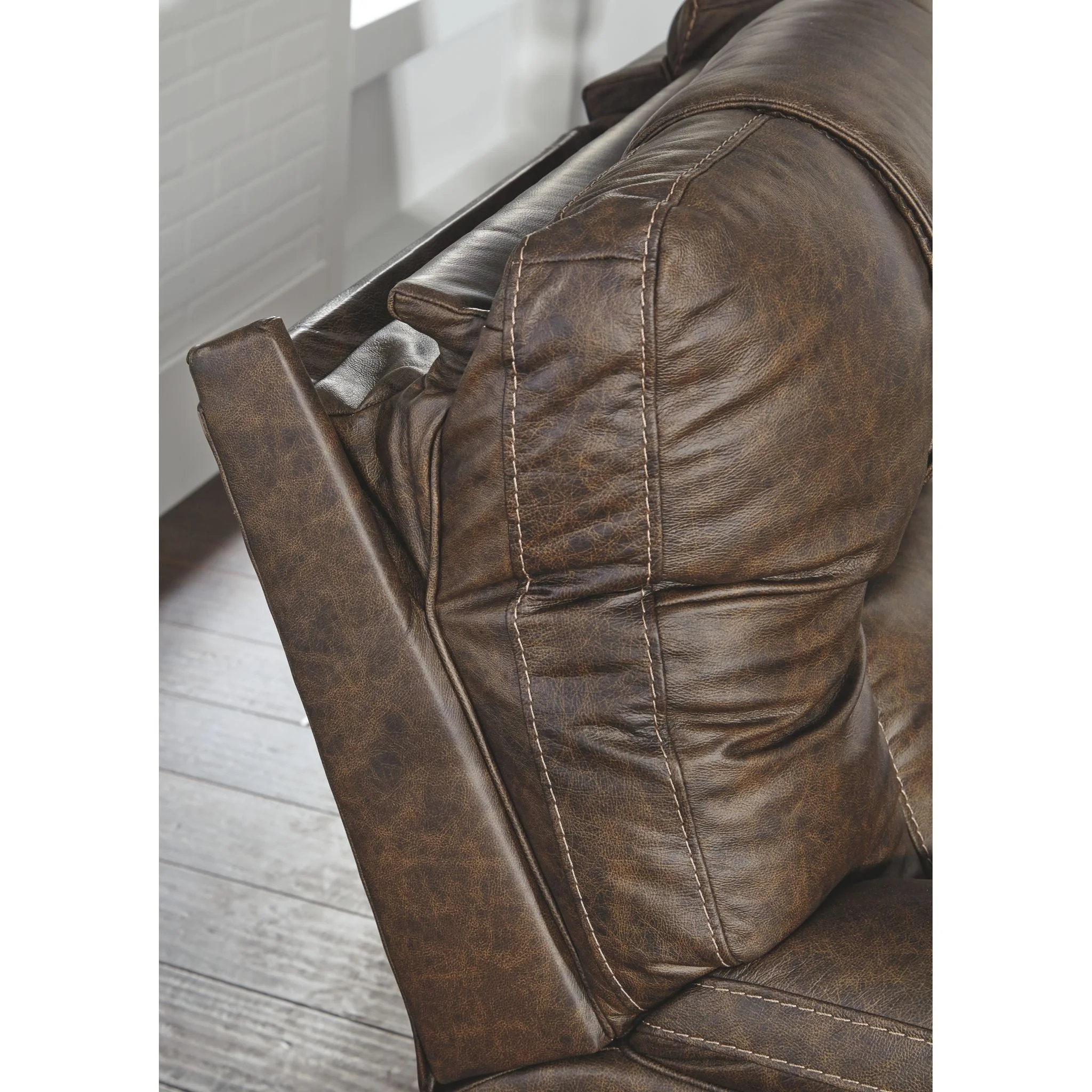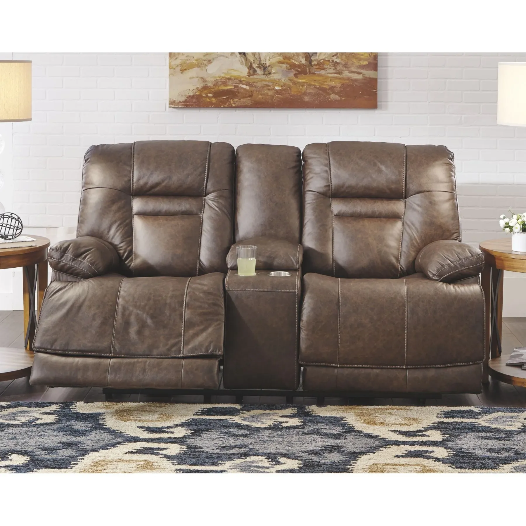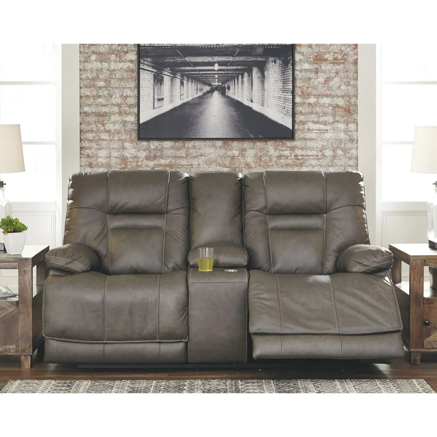 Grande y audaz, el sofá reclinable eléctrico Wurstrow con consola y reposacabezas ajustables eléctricamente Easy View™ ofrece comodidad con solo tocar un botón. Coloque fácilmente el sillón reclinable, su reposacabezas y soporte lumbar a su gusto para una máxima comodidad. Además, con los prácticos puertos de carga USB, se pueden cargar teléfonos celulares o computadoras portátiles sin tener que levantarse. El cuero real se combina con cuero sintético combinado de manera experta para subir de nivel el lujo asequible. Los detalles en la tapicería de color ocre crean un aspecto rústico ideal para su entorno moderno o inxformal. La consola central remata la comodidad con almacenamiento oculto debajo del apoyabrazos central, perfecto para guardar los controles remoto. Le encantará tener las bebidas a su alcance con los dos portavasos de acero inoxidable.
