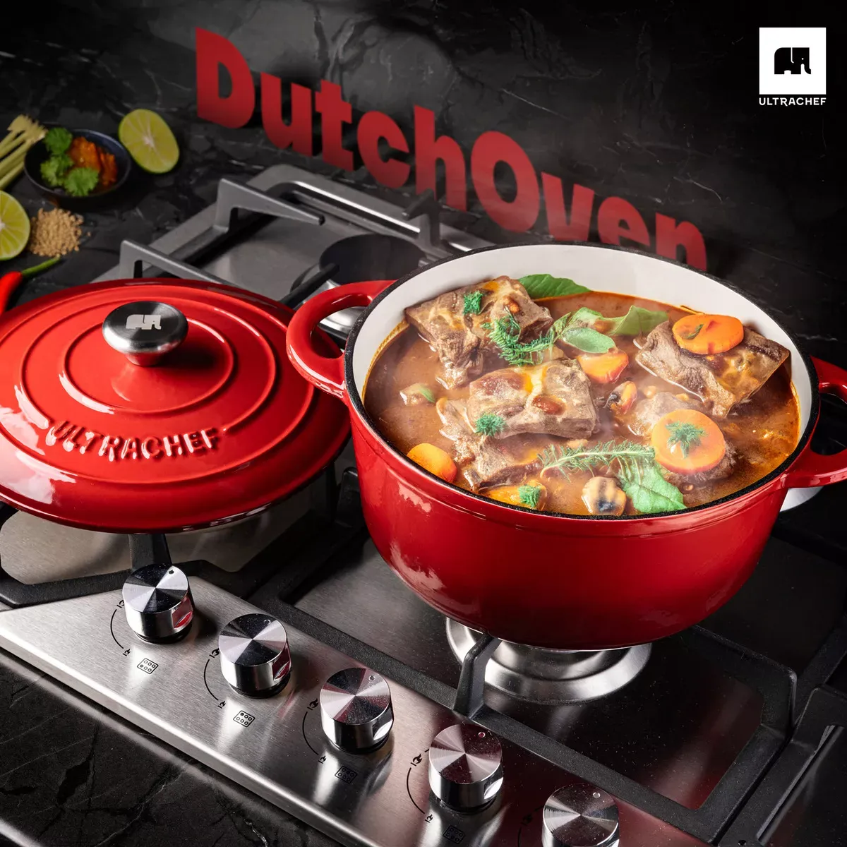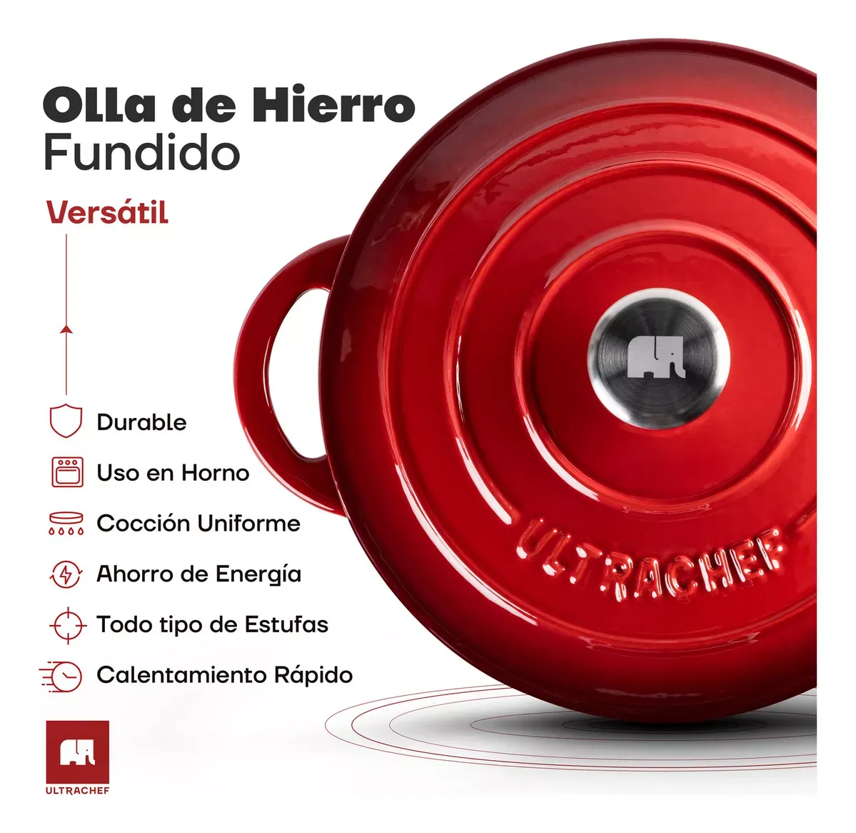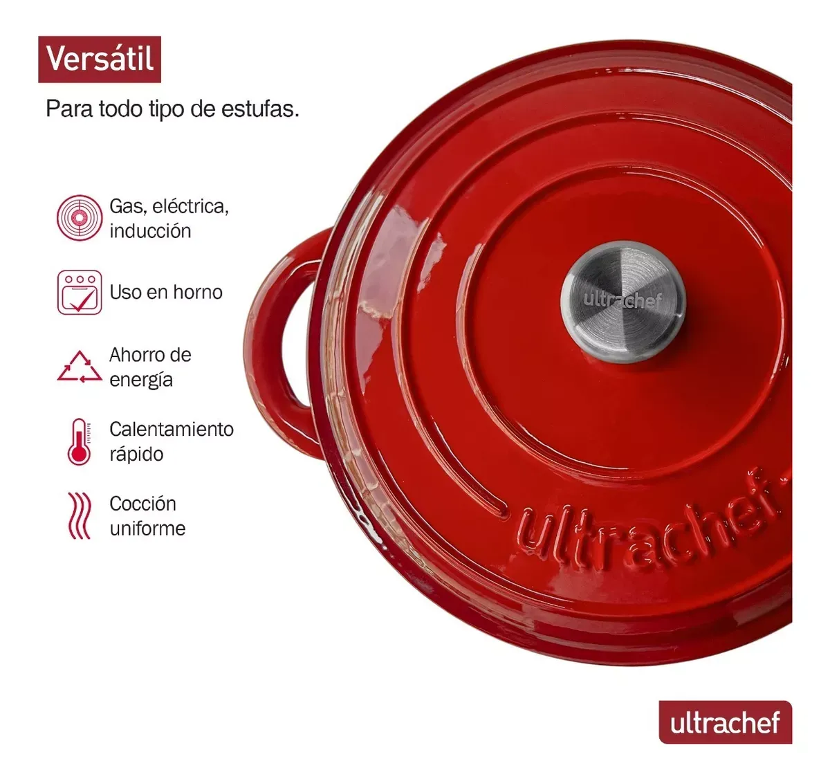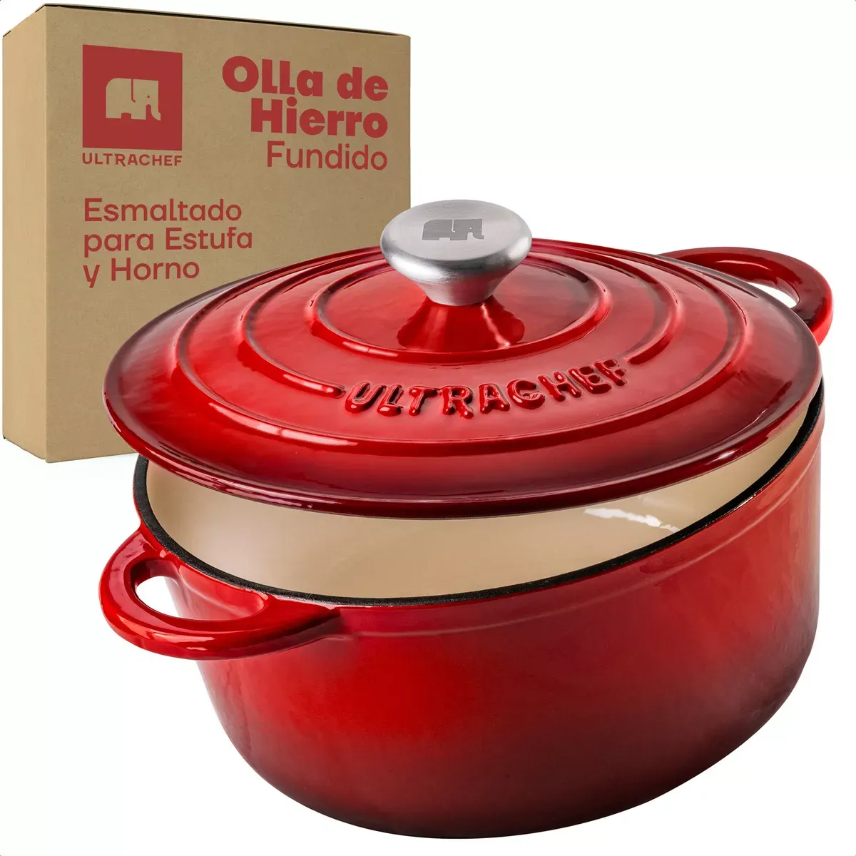Olla Hierro Fundido Esmaltada Ultrachef 28cm 6 Litros Color Rojo