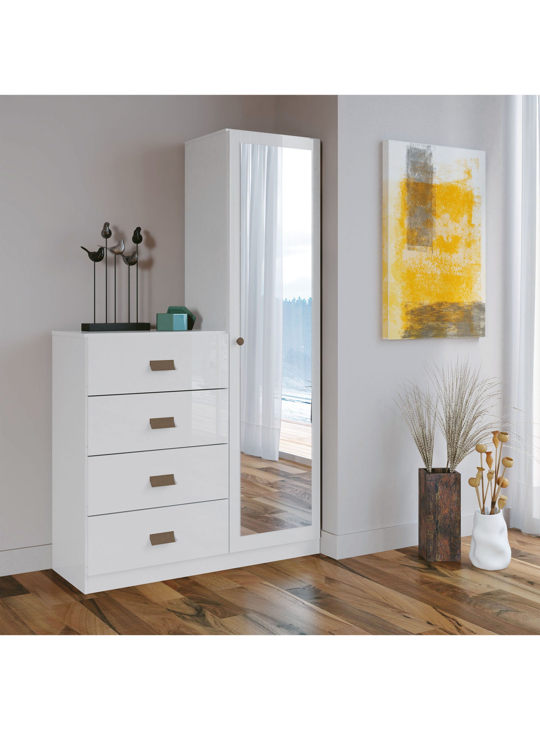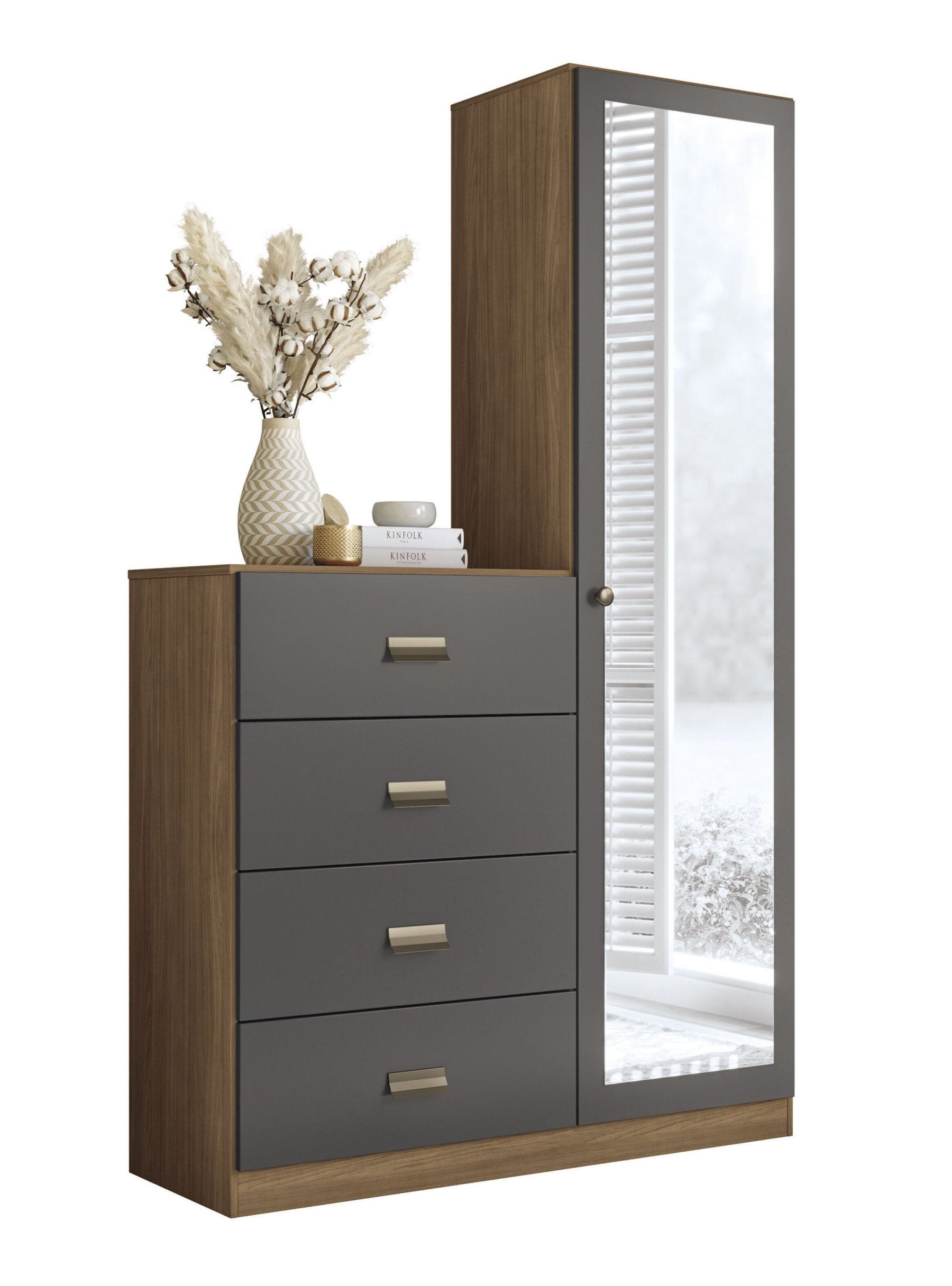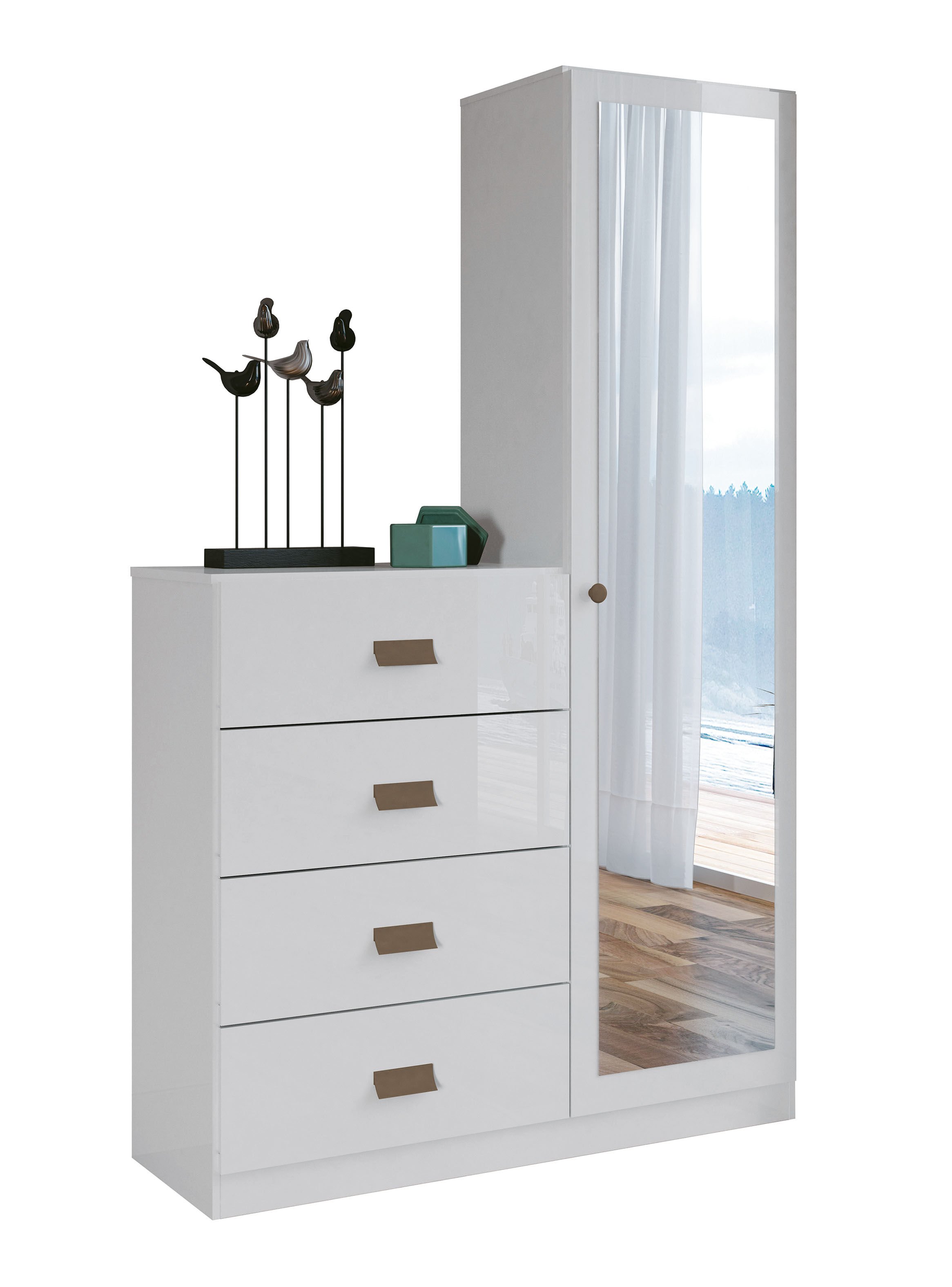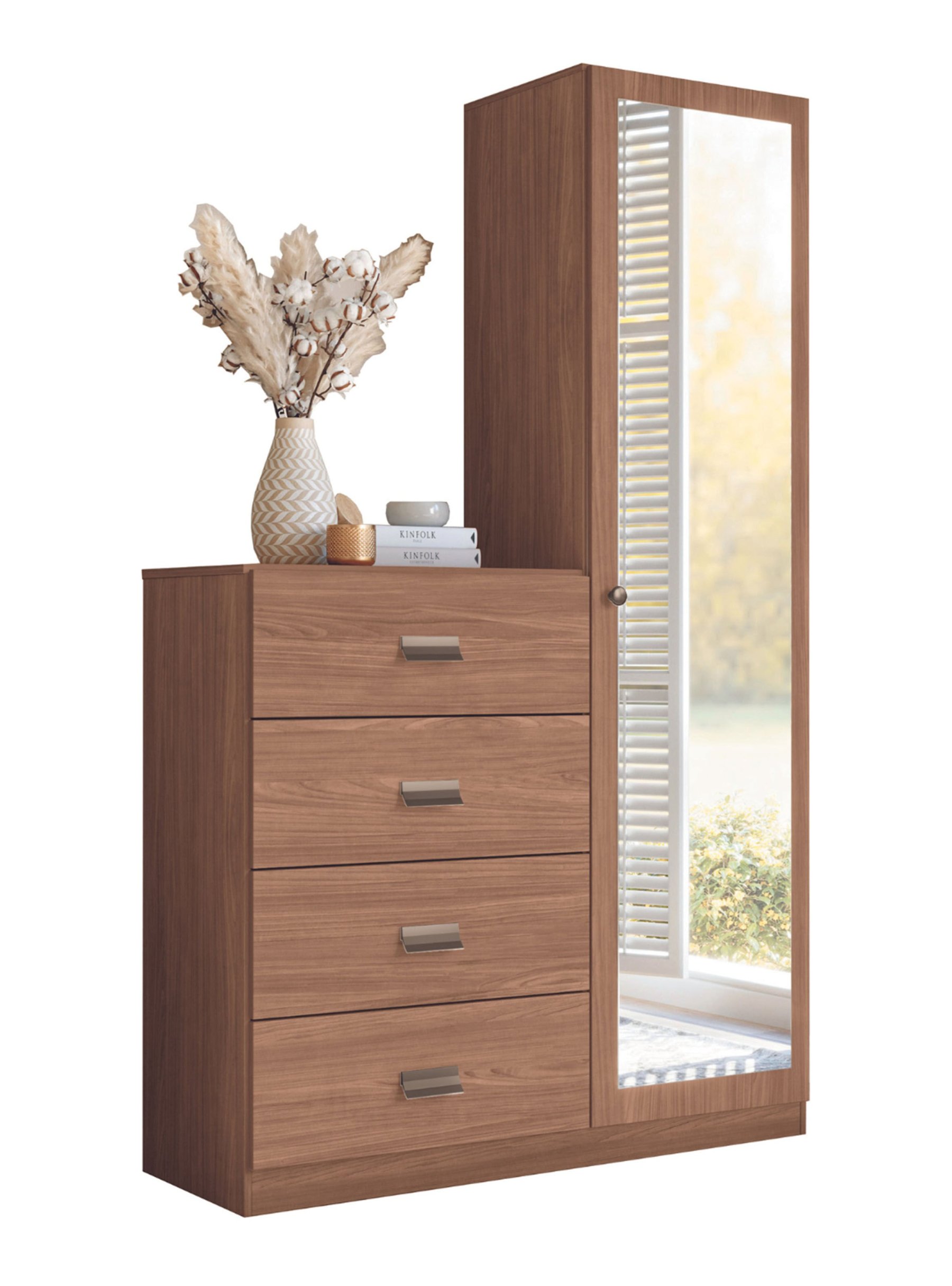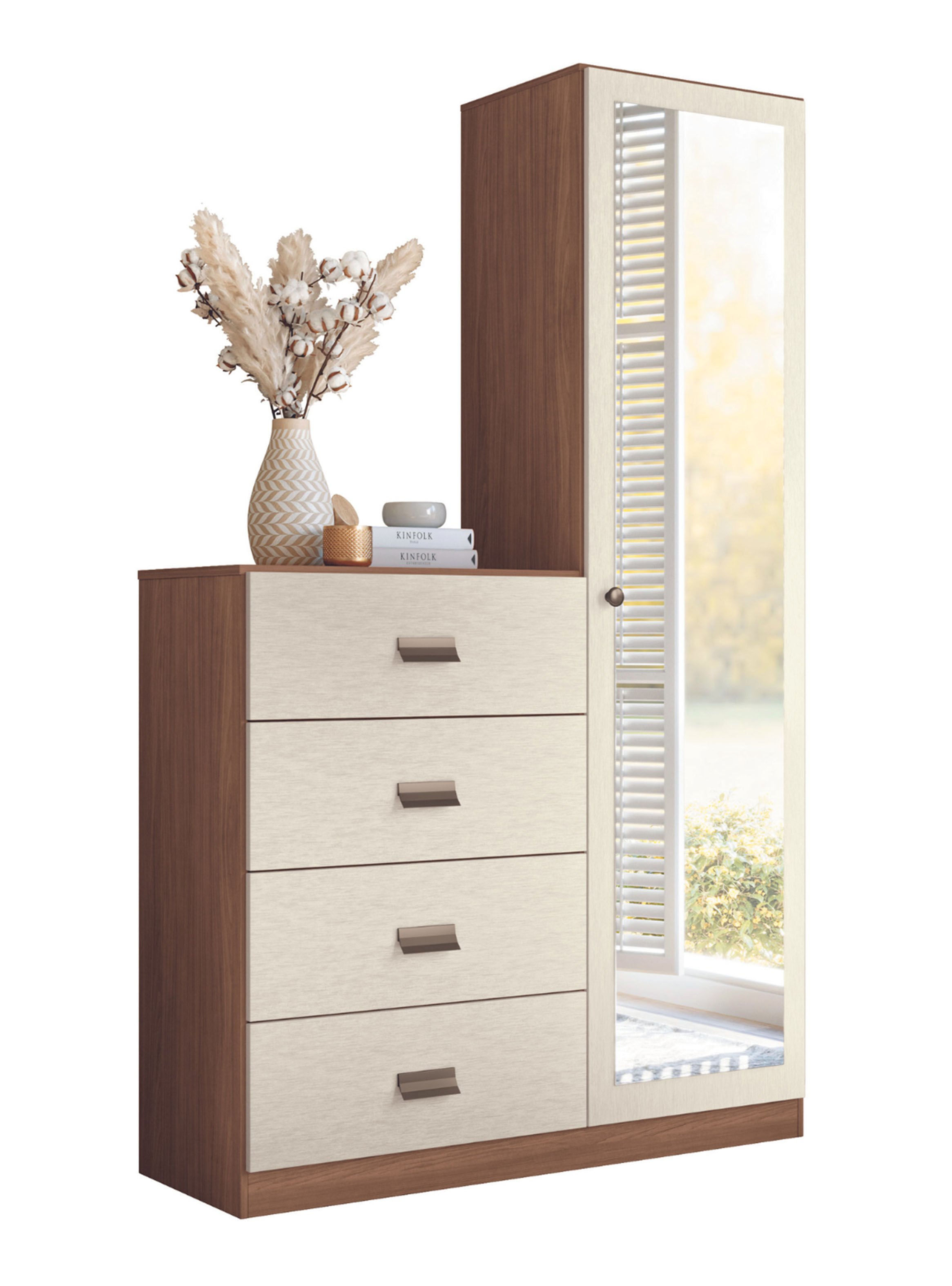 Cómoda Estilo 1 Puerta con espejo 4 Cajones