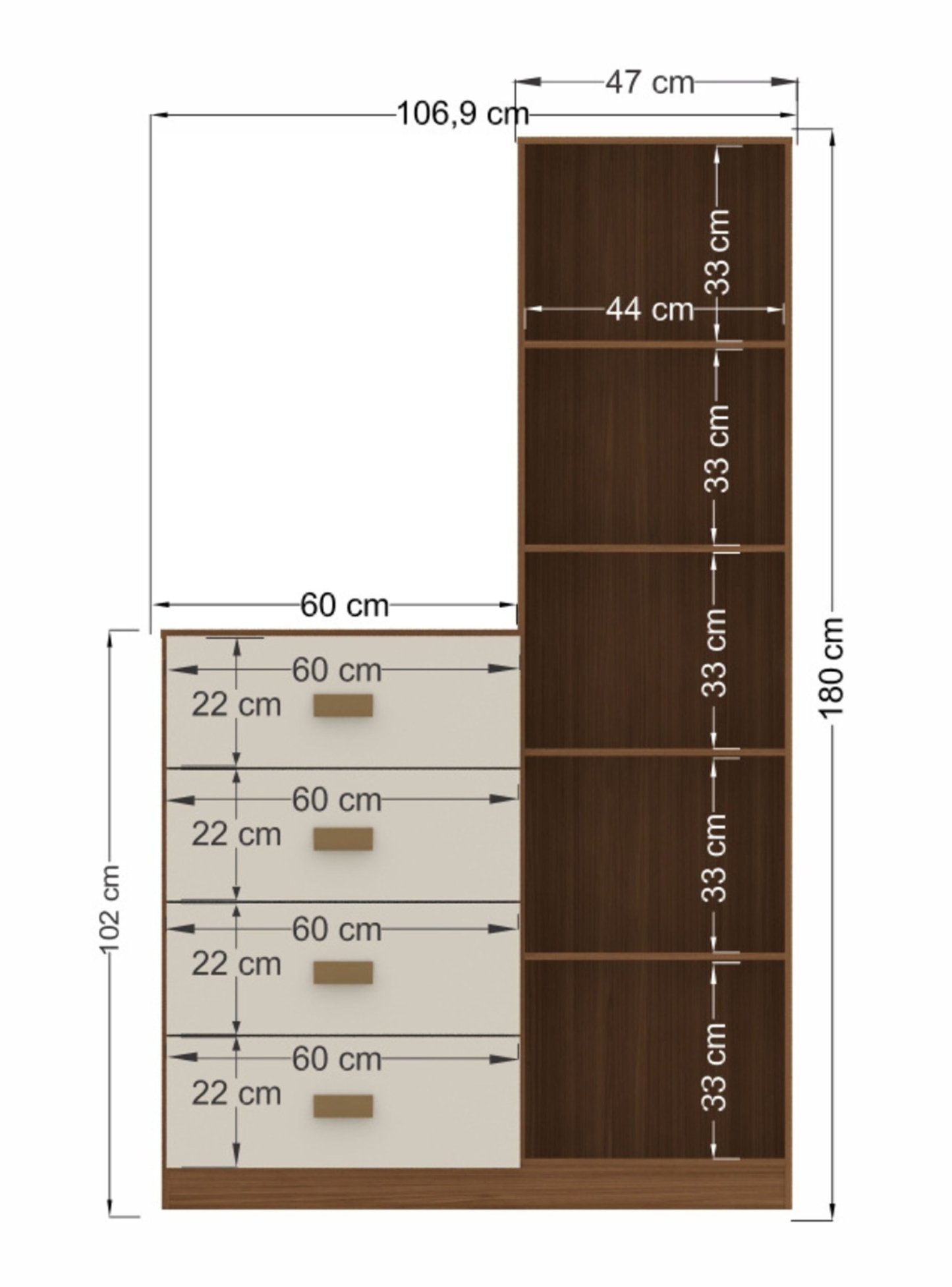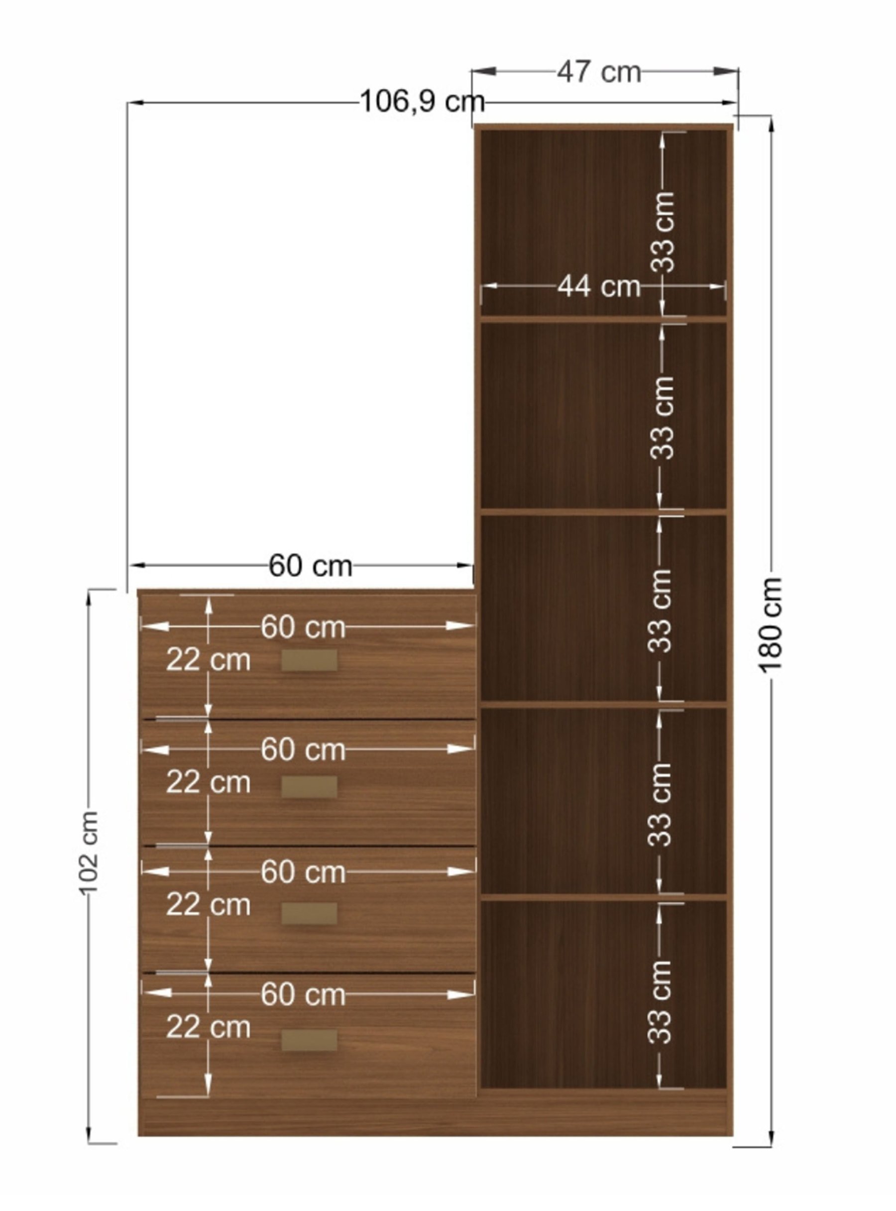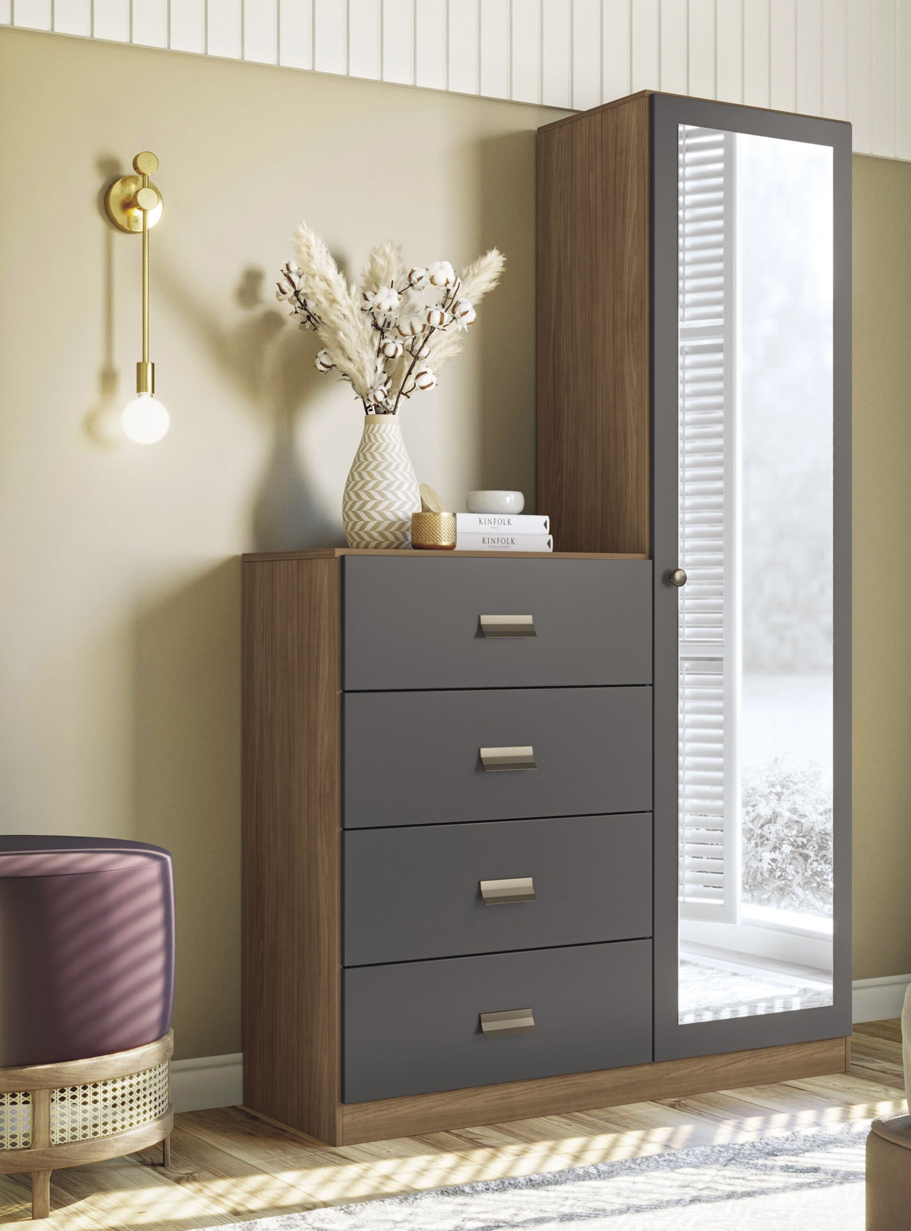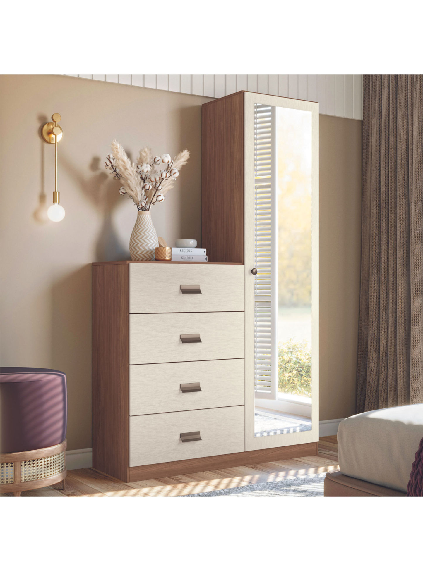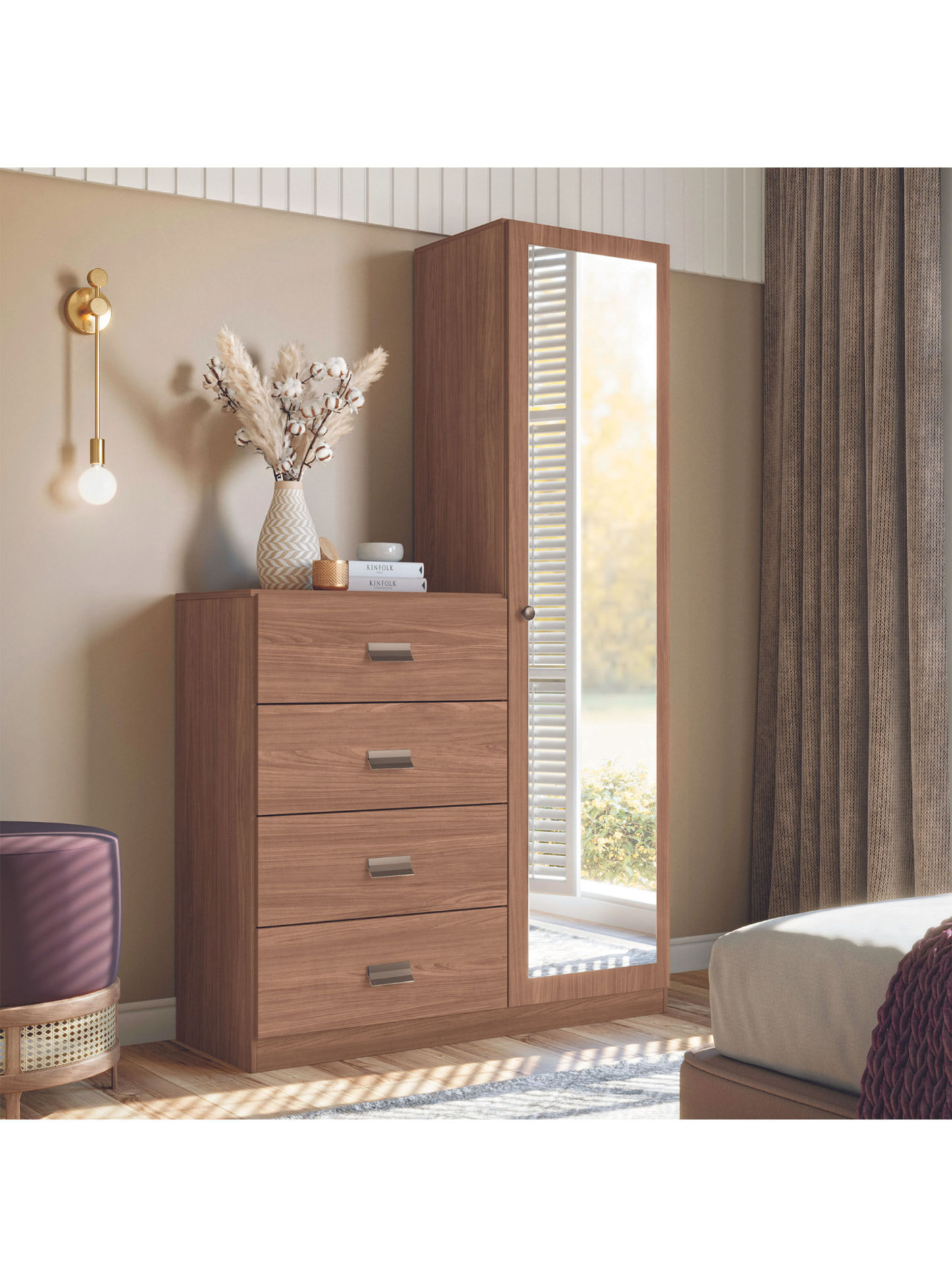 Cómoda Estilo 1 Puerta con espejo 4 Cajones