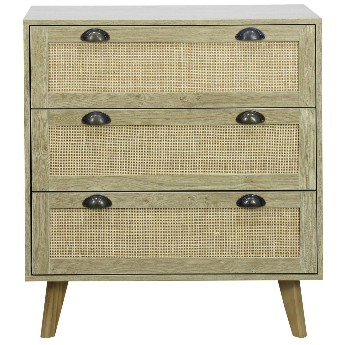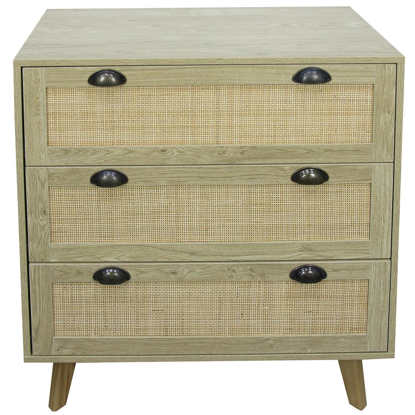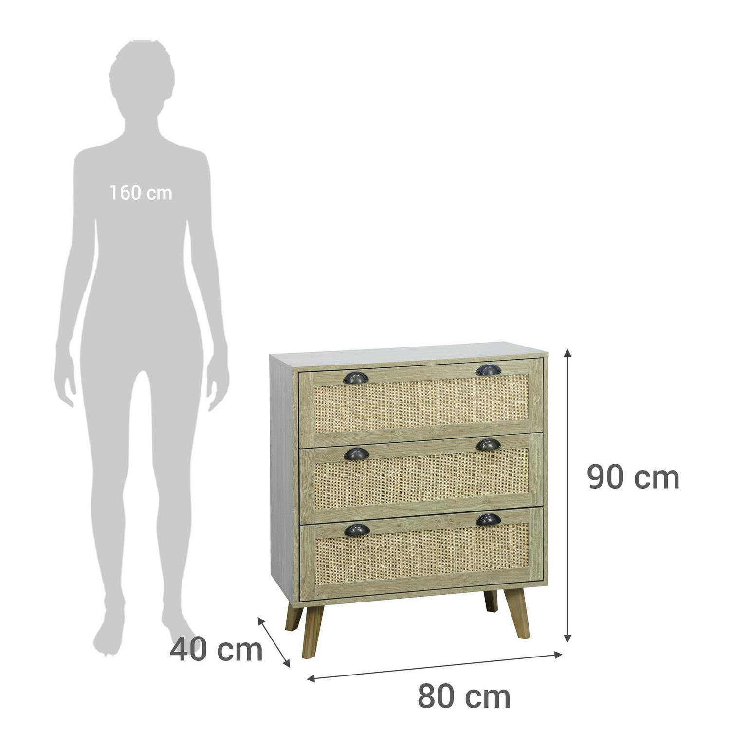 Cómoda 3 Cajón Rattan 80x90x40 cm Café