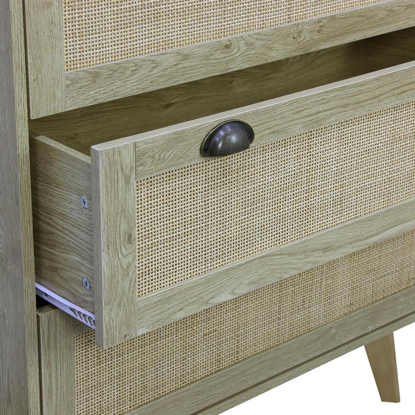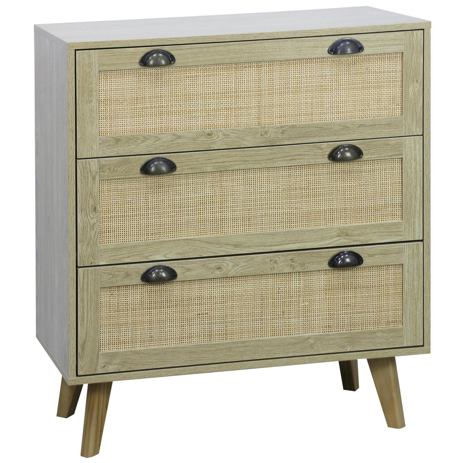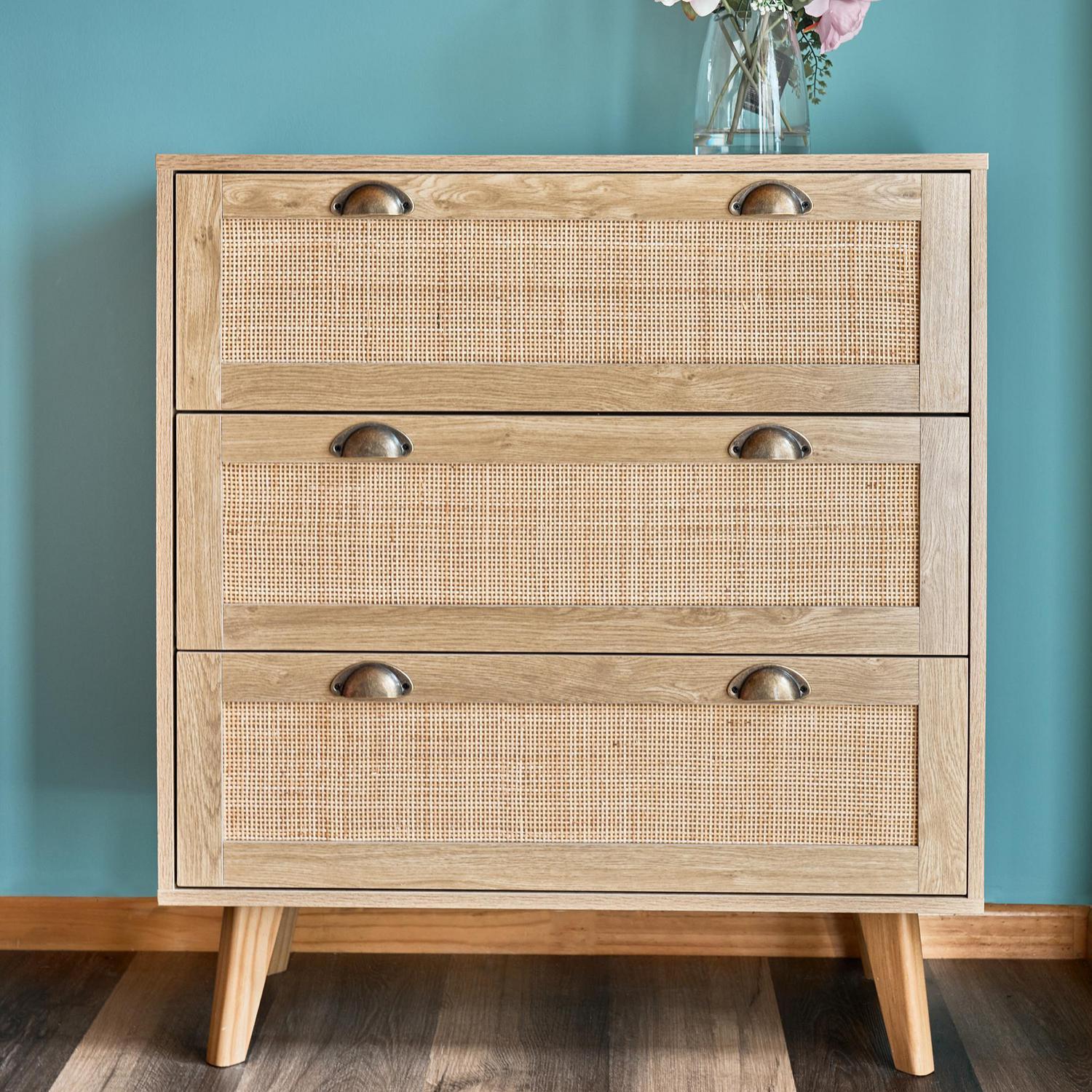 Cómoda 3 Cajón Rattan 80x90x40 cm Café
